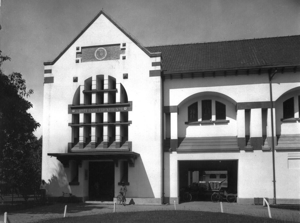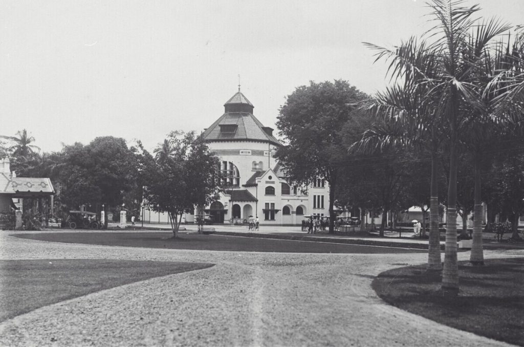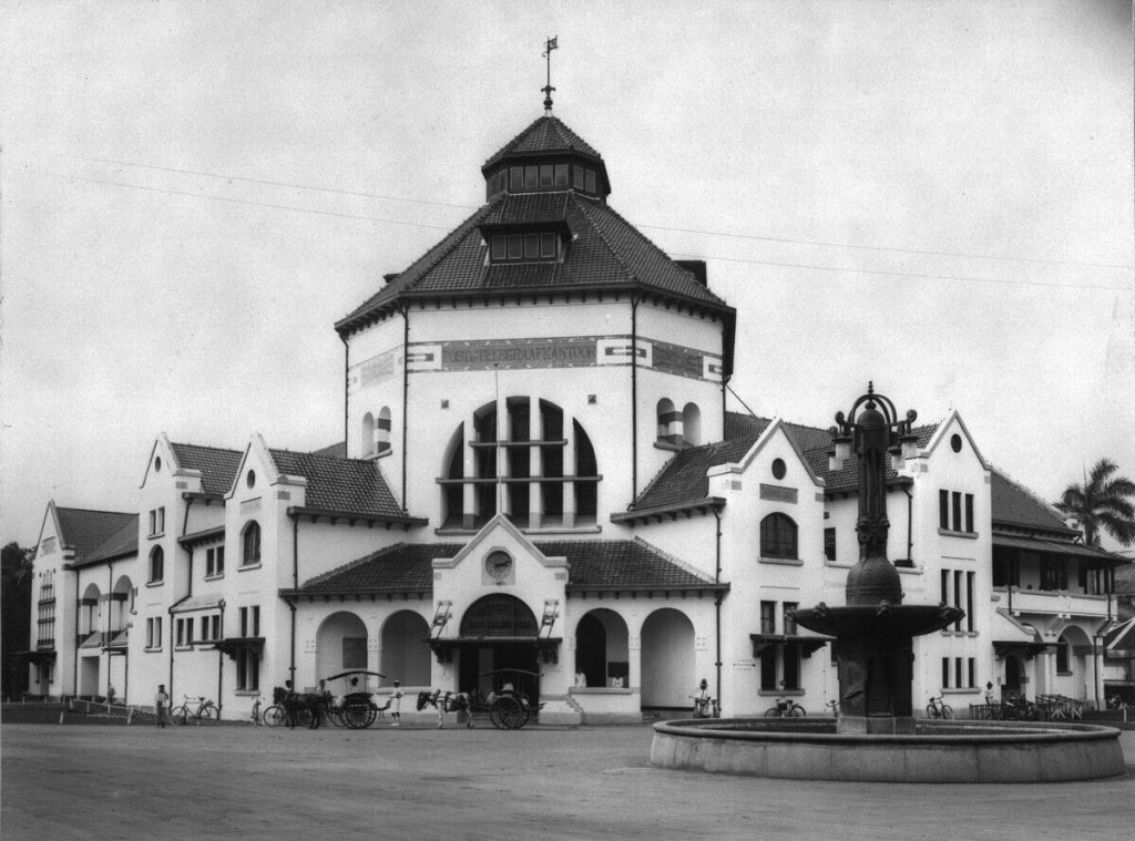The building functioned as a post office from its inception until 2022, then it was turned into a commercial area under the name Pos Bloc. Construction began in 1909 and was completed in 1911. The building was the first major project for J. Snuyf, a Dutch architect who in 1909 became head of the public works department (BOW/Burgerlijke Openbare Werken) in colonial Batavia. Although the gevel (wall layer) and tower with dormer (skylight) are still visible, reminiscent of traditional Dutch architecture adapted to the tropical climate, the building was said by Dutch architect Cor Passchier to show an innovation at the time that illustrated a search for a new style (Transitional Architecture),